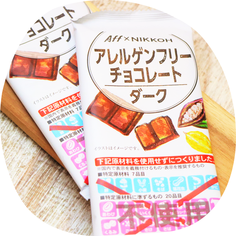 日幸製菓さんのアレルゲンフリーチョコレート(ダーク)を使用しています。